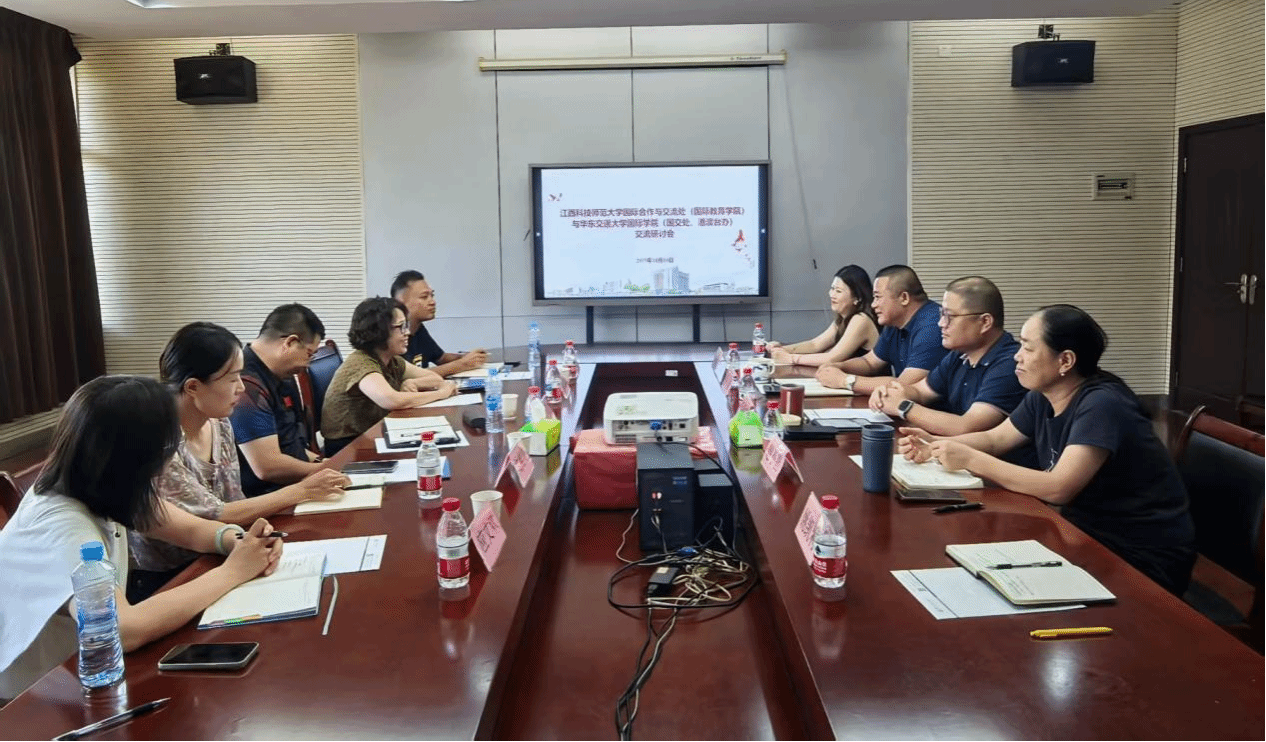 2025年10月10日下午,江西科技师范大学国际教育学院党委书记肖文、院长张礼牡一行5人来校调研交流,国际学院党委书记李雪峰、副院长赵小晶、尚勇及相关科室负责人参加会议。